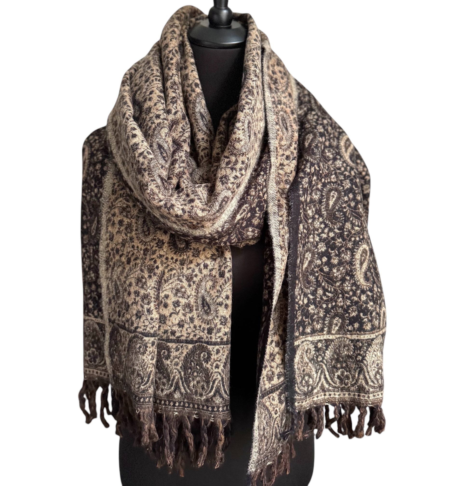 Handgewebte Woll-Schals, komplexe Muster, Wendeschal 100x215cm