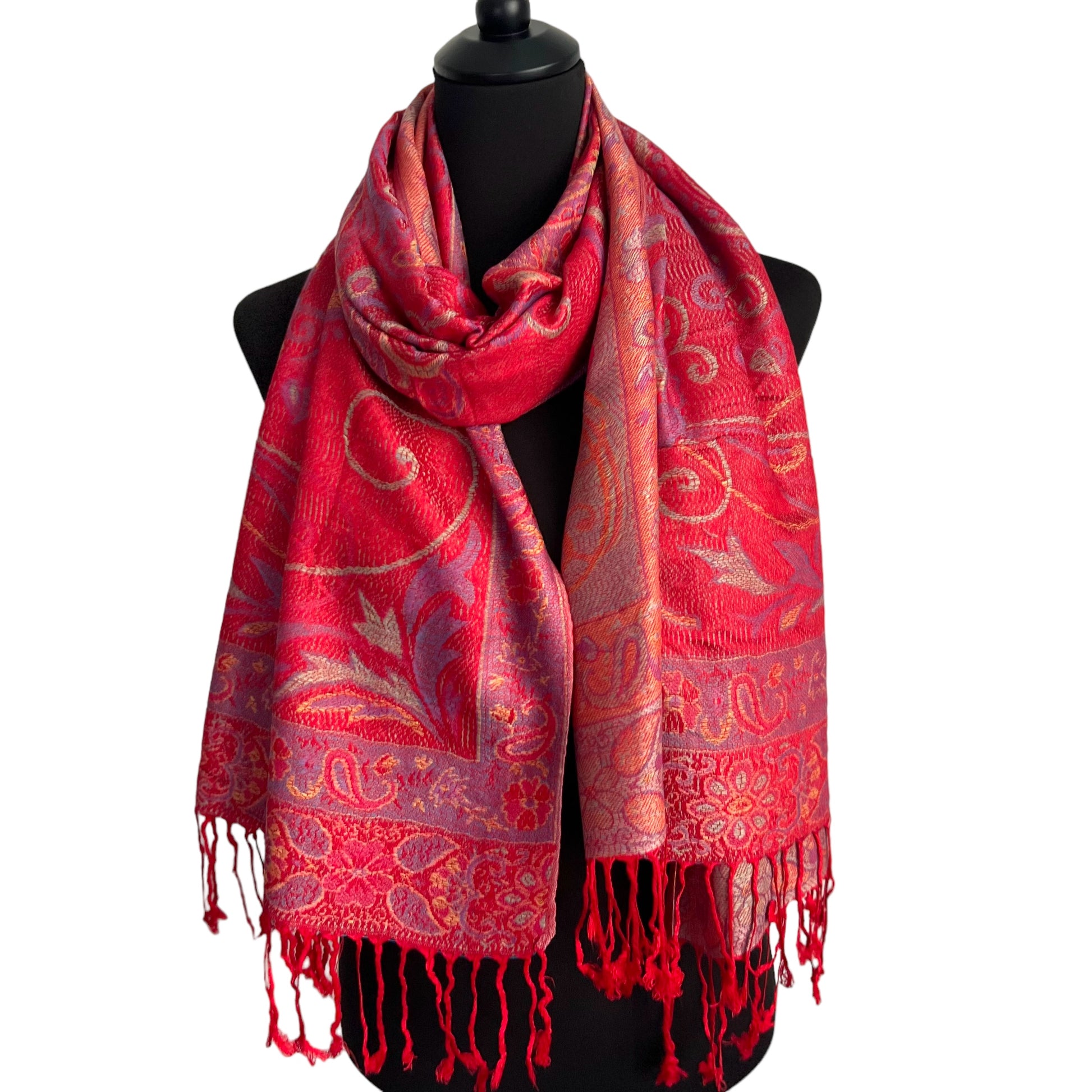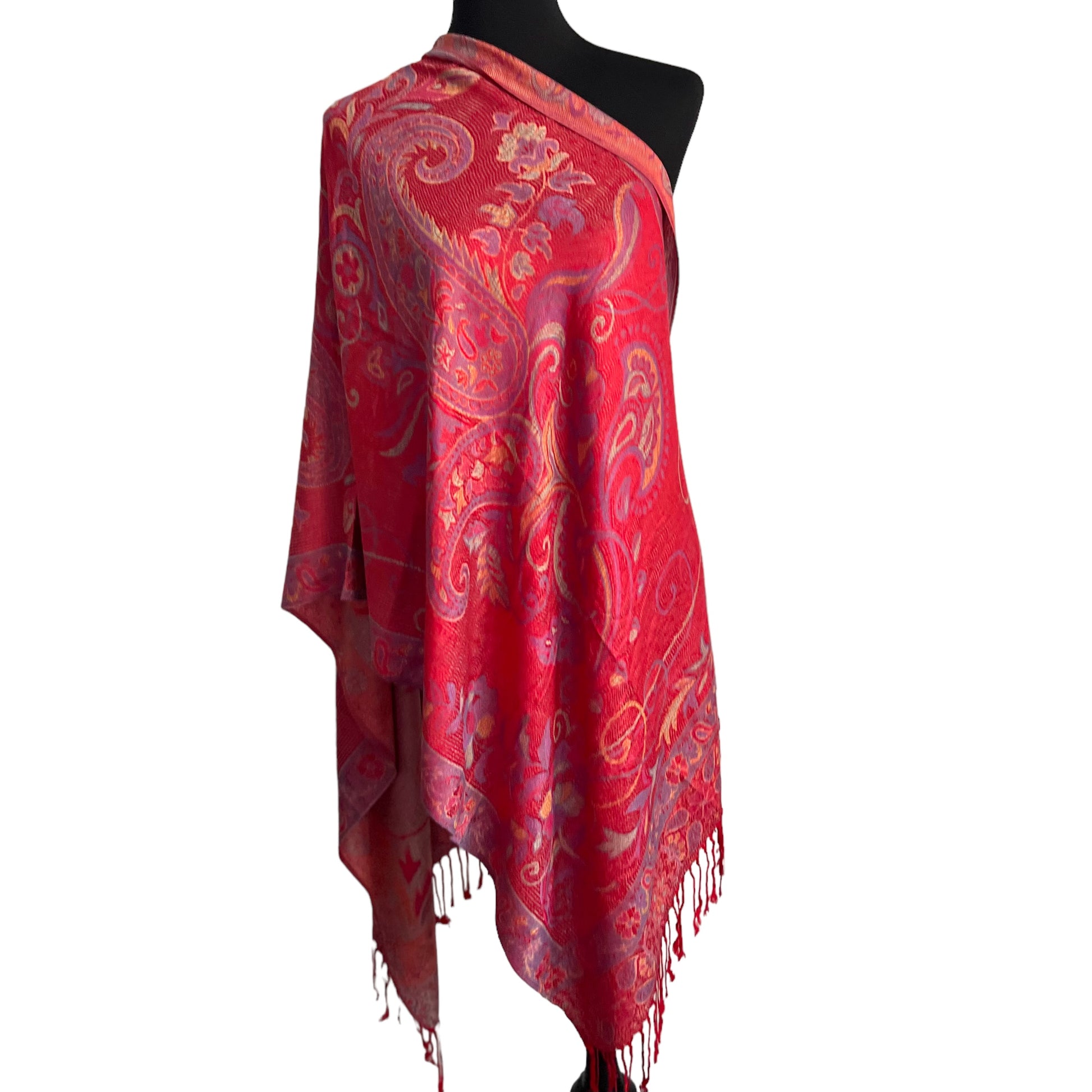 Leichte Schals für die wärmeren Jahreszeiten und alle Anlässe. Diese Schals sind extrem leicht und weich. Super-fein gesponnene Fäden nach traditionellen Methoden handgefärbt und handgewebt. Luxuriös fallender Stoff in gediegenen Farben und edlen Designs inspiriert von traditioneller Himalaya-Kunst.