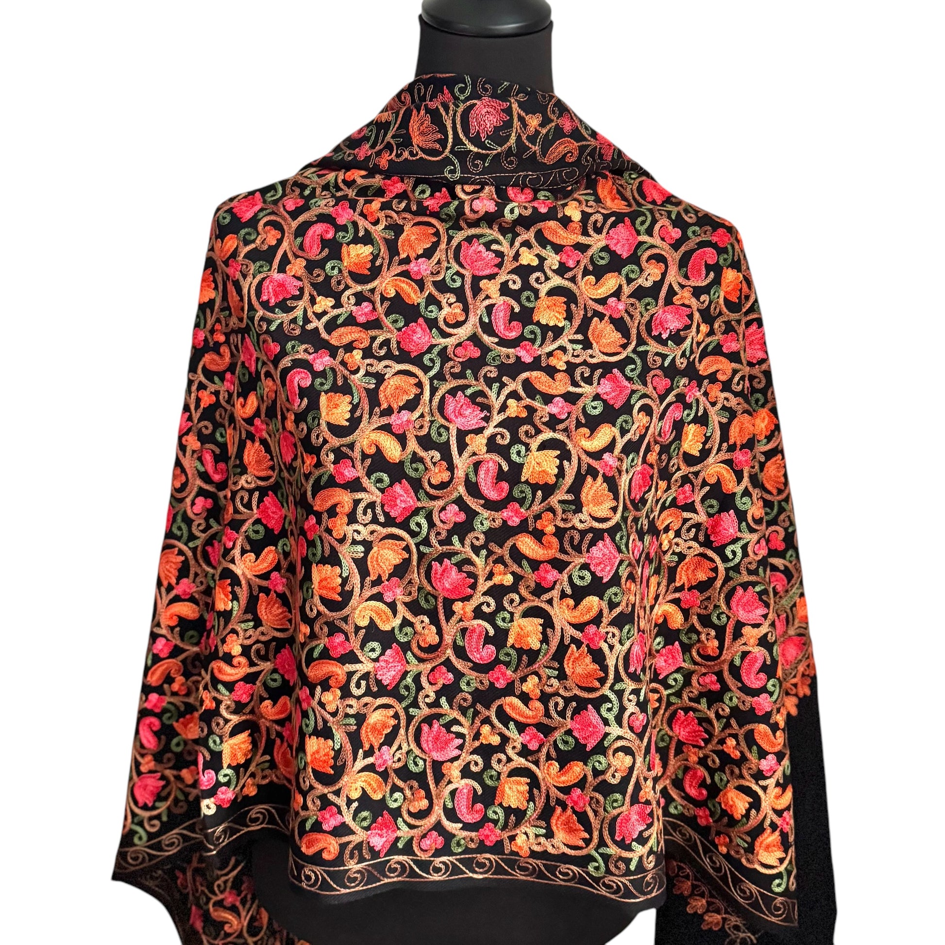 Farbenfroher Schal aus Wollgemisch, bunt bestickt, ein Festival der Farben und Formen.