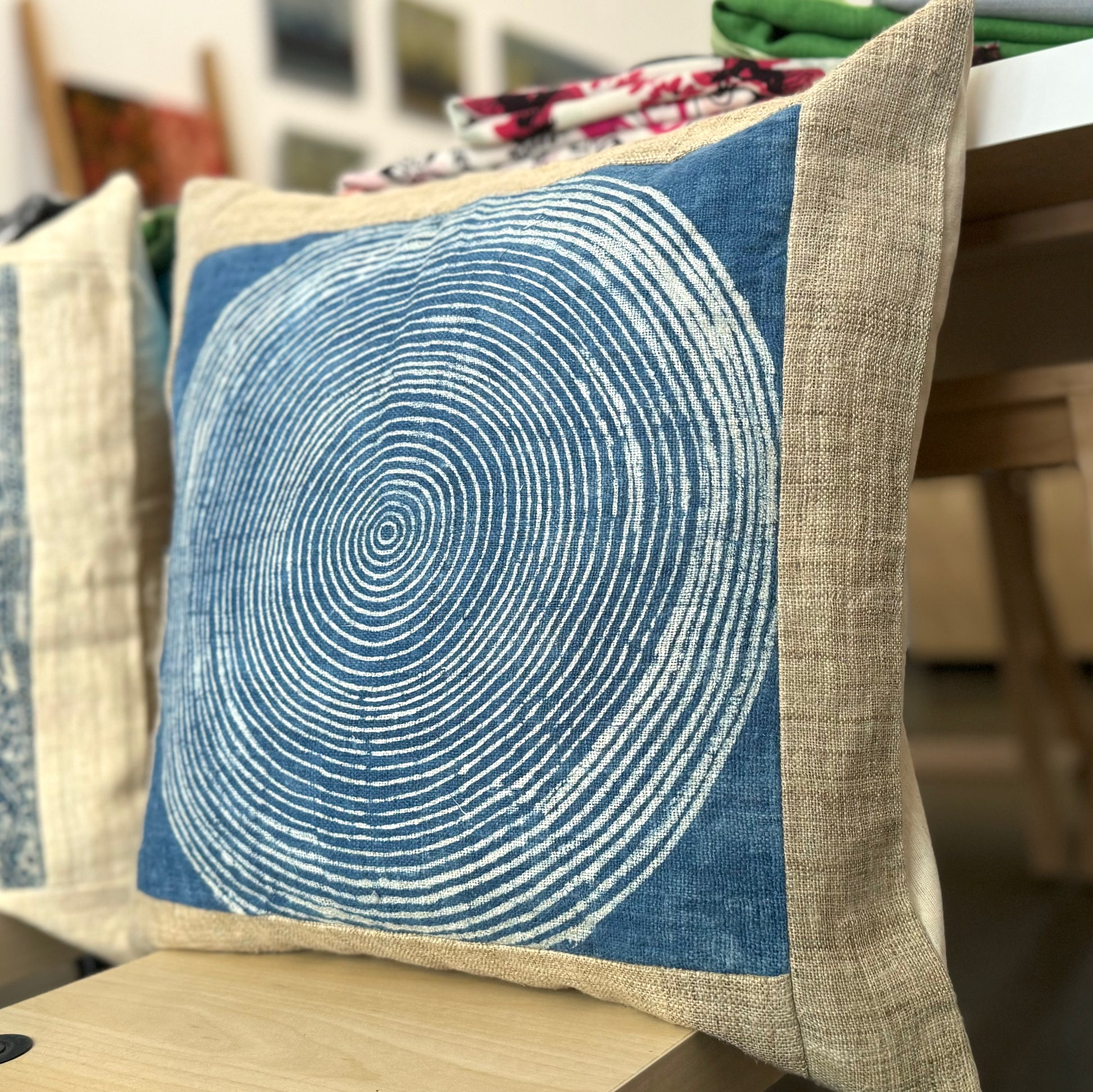 Die Kissenbezüge folgen dem selben Muster, aber jeder einzelne Einsatz ist einzigartig, was jedes Kissen zu einem Einzelstück macht.