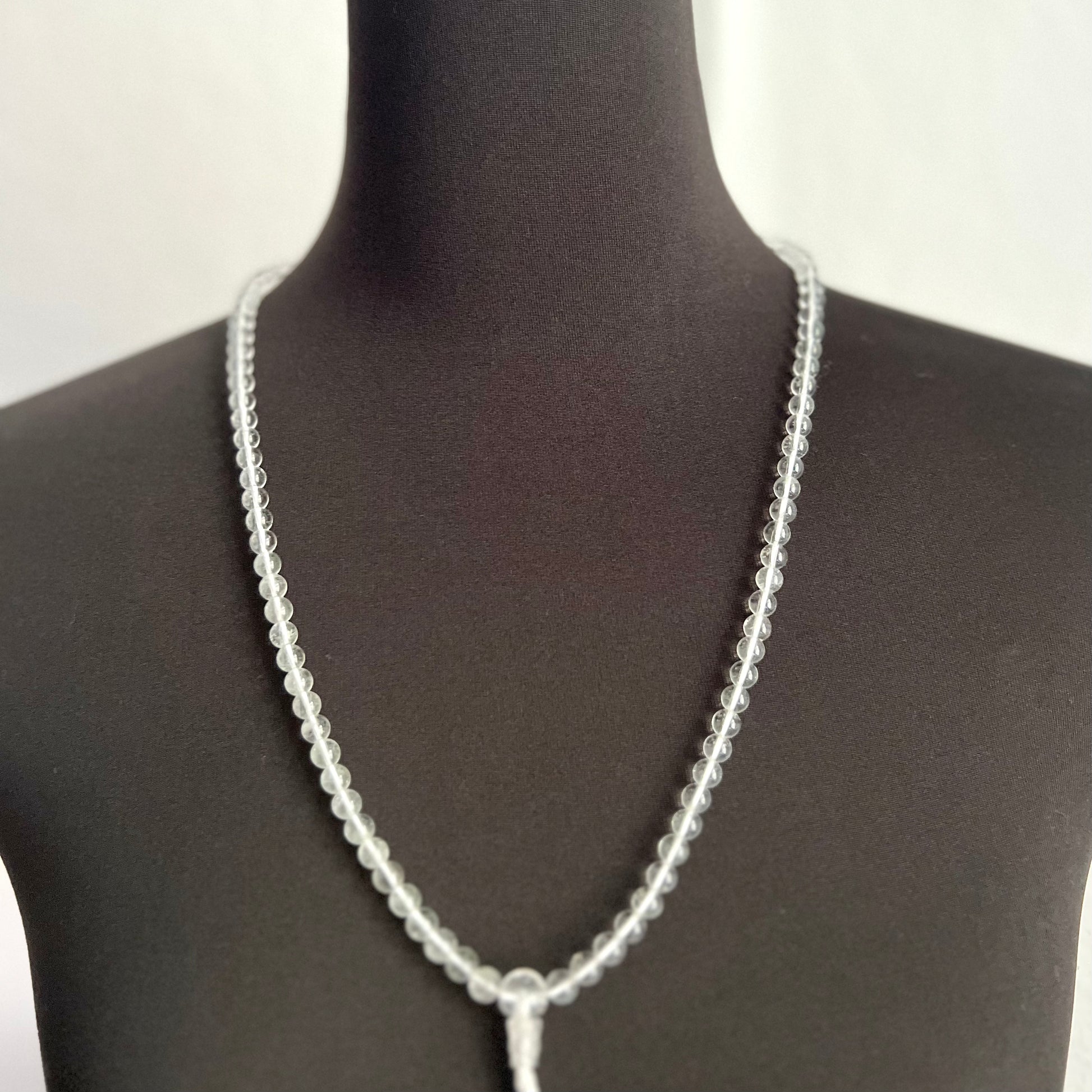 Diese wunderschöne und edle 108-Perlen-Mala aus Krystal schmeichelt die Finger und ist mit Liebe in Nepal aus natürlichen Materialen und mit traditionellen Methoden und Knoten handgemacht. Die Mala ist perfekt für Mediation oder Yoga. Oder als Schmuck.